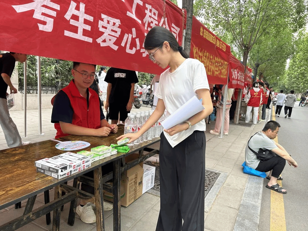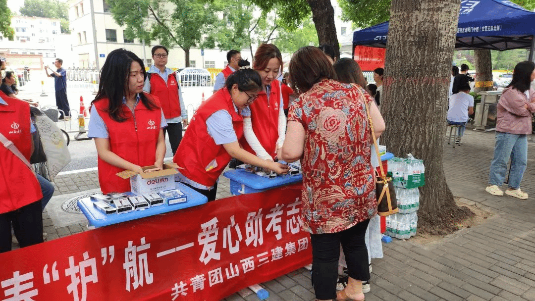 三建集团在长治、太原、晋城等地开展“为梦想而战 为青春护航”爱心助考效劳。。。。。今年效劳规模延伸至考点周边的户外事情者,,,自愿者们同样也为环卫工人、执勤交警等考点包管事情者们送去清凉物资。。。。。