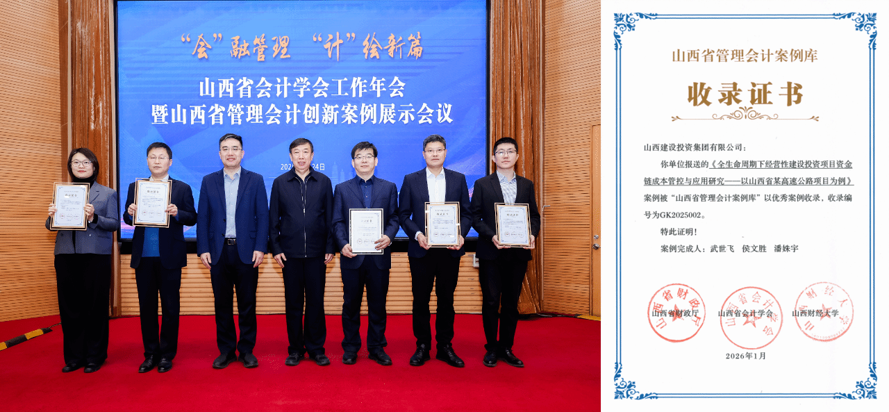 山西省财务厅对全省报送案例举行初评筛选、入户效劳、评审答辩,,,,,共评选出11个与治理流程、营业场景、战略目的深度融合的案例收录至山西省治剖析计案例库,,,,,并现场揭晓了《山西省治剖析计案例库收录证书》。。作为山西省第一批会计事情联系点单位,,,,,集团报送的两个案例在众多优异案例中脱颖而出。。其中,,,,,《全生命周期下谋划性尊龙凯时投资项目资金链本钱管控与应用研究——以山西省某高速公路项目为例》依附立异性和适用性,,,,,被评为4个优异案例之一,,,,,并在聚会现场举行了效果展示。。现在,,,,,集团已累计在库4个案例。。