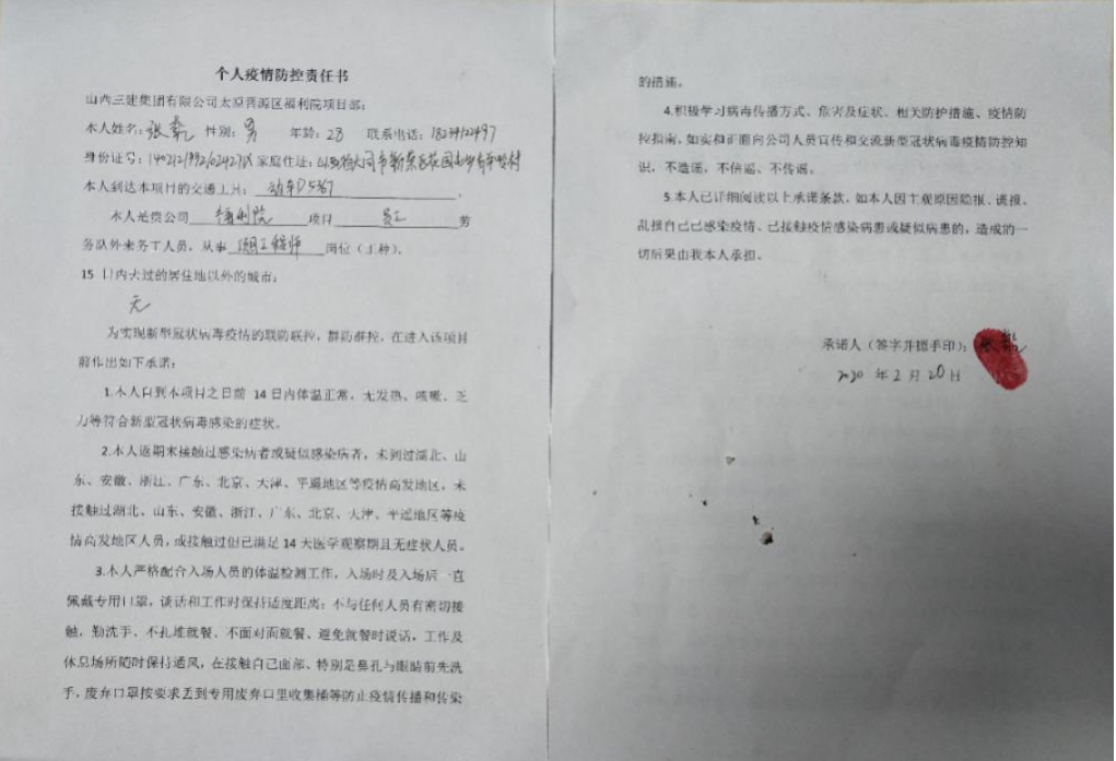 ×÷ΪÈý½¨¼¯ÍÅÊ×Åú¸´¹¤¸´²úÏîÄ¿£¬£¬£¬£¬Ì«ÔÊнúÔ´Çø¸£ÀûÔºÏîÄ¿²¿ÖÎÀíÖ°Ô±¡¢ÀÍÎñÖ°Ô±ËùÓÐͶÈëÖ÷Ҫʩ¹¤ÖУ¬£¬£¬£¬¸´¹¤Ö°Ô±ÔÚ½øÈëÏîÄ¿²¿Ç°£¬£¬£¬£¬±ØÐèÇ©Êð¡¶Ð¡ÎÒ˽¼ÒÒßÇé·À¿ØÔðÈÎÊé¡·¡£¡£¡£¡£¶ÔÿһÃû×¼±¸½øÈëÊ©¹¤ÏÖ³¡µÄÀÍÎñÖ°Ô±£¬£¬£¬£¬½øÃÅǰҪ¾ÓÉ“ÎåµÀ¹¤Ðò”£ºÍ¨¹ýʵÃûÖÆÍ¨µÀ¡¢Ð¾Æ¬´ò¿¨¡¢ÕÉÁ¿ÌåΡ¢Ïû¶¾¡¢ÌåιҺÅ......Íê³ÉÕâһϵÁÐÐж¯£¬£¬£¬£¬²Å»ªÕýʽ½øÈëÊ©¹¤ÏÖ³¡¡£¡£¡£¡£