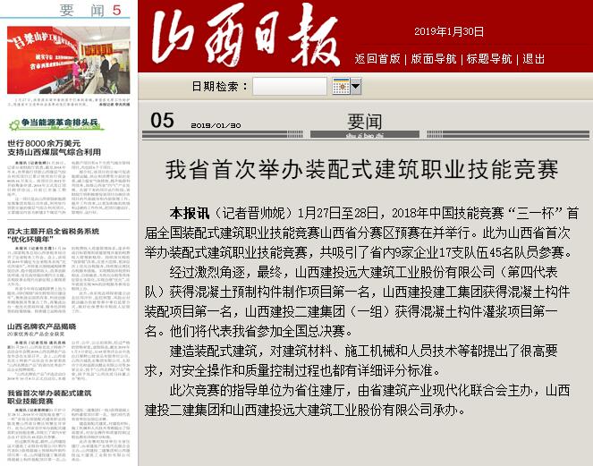 经由角逐,,,,山西建投远大修建工业股份有限公司获得混凝土构件制作项目第一名,,,,山西建投建工程集团获得混凝土构件装配第一名,,,,山西建投二建集团获得混凝土构件灌浆第一名,,,,他们将代表我省加入天下总决赛。。。。。