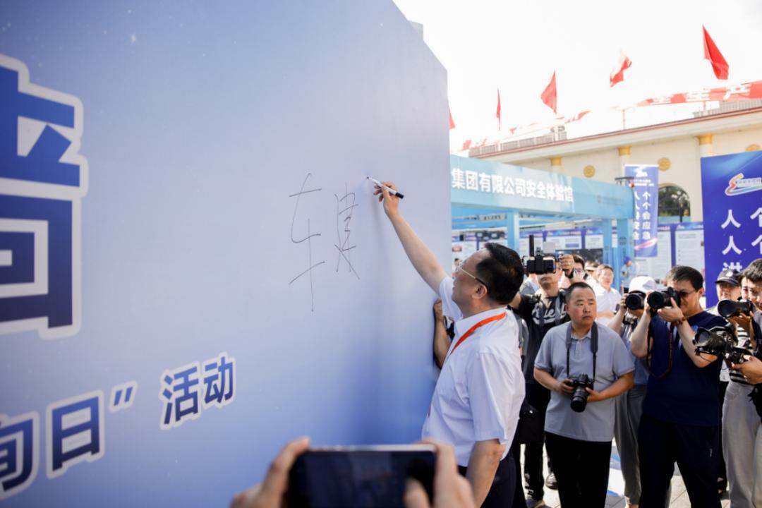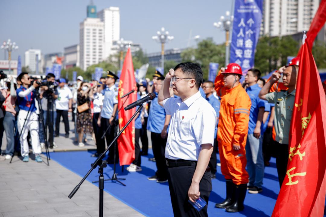 运动现场,,装置集团党委书记、董事长王利民领誓,,100余名企业员工代表和部分救援步队举行清静宣誓,,与会职员署名允许,,并巡视展区。。。