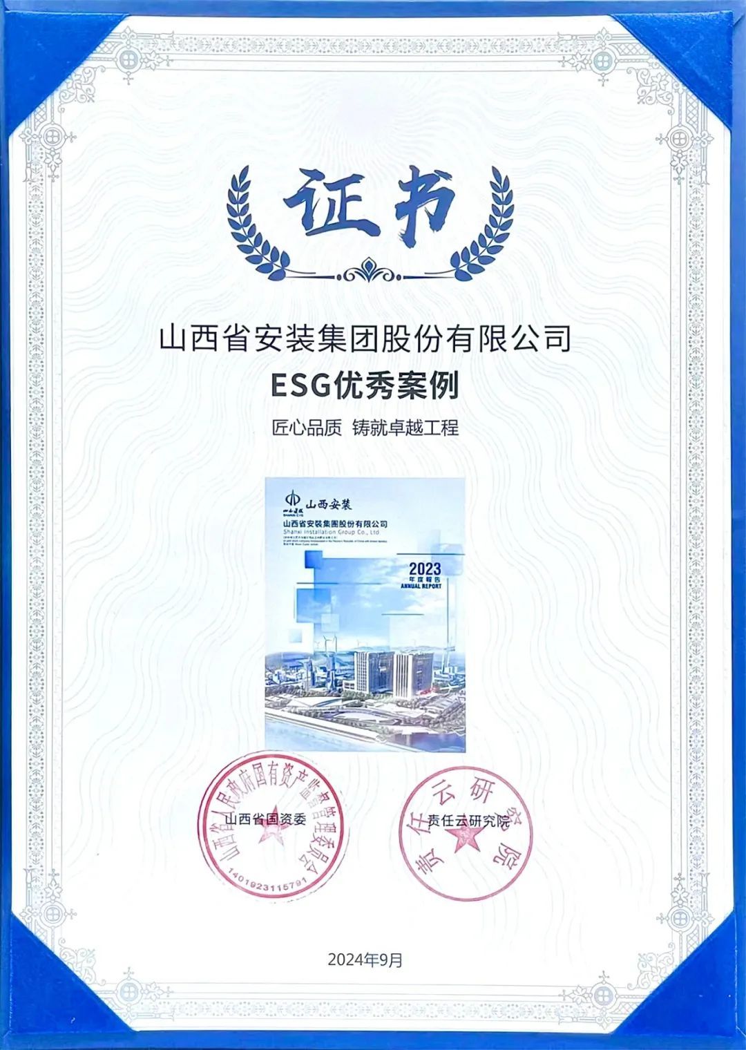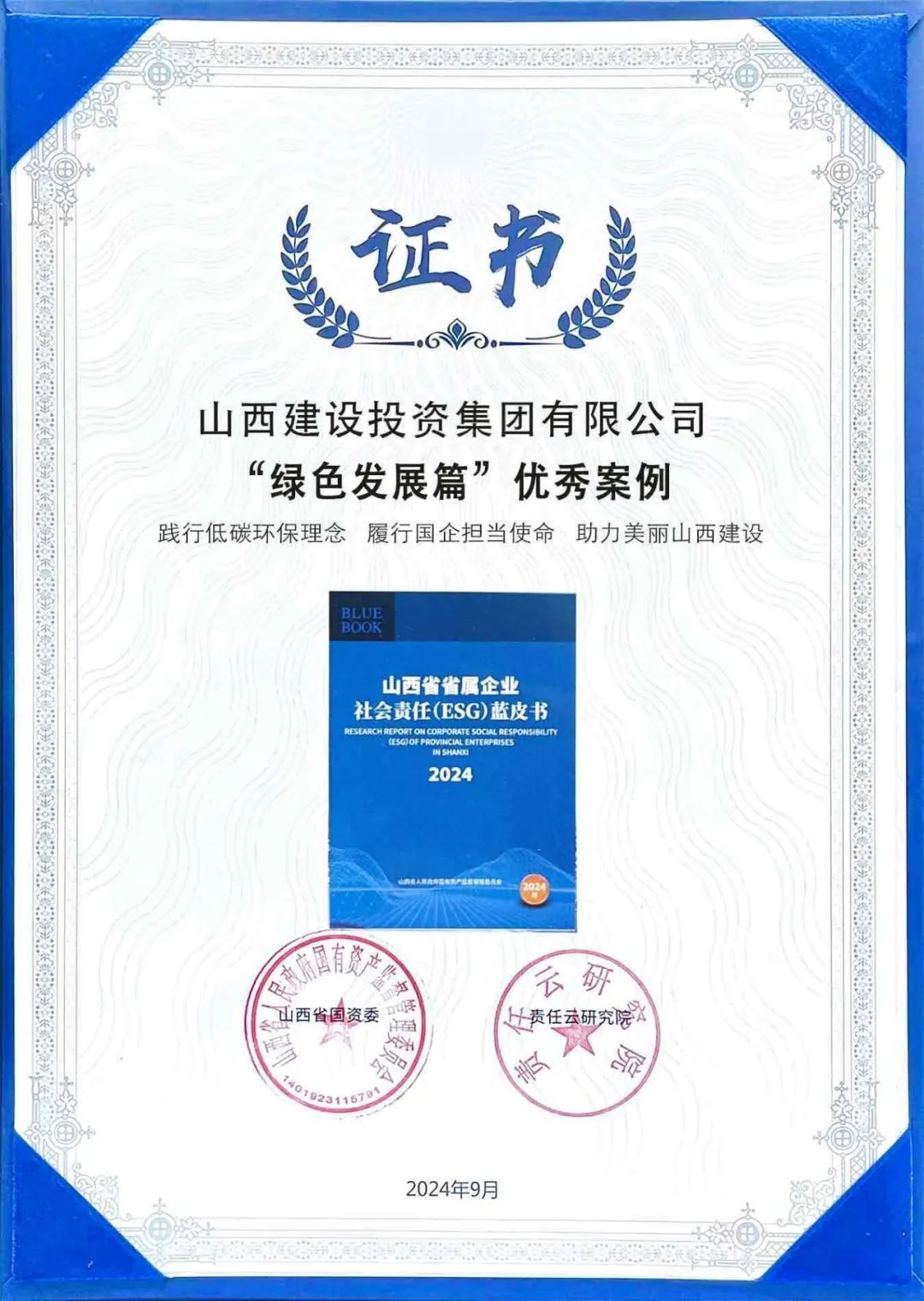 《山西省省属企业社会责任(ESG)蓝皮书(2024)》收录了60篇省属企业优异案例,,,,全方位、多条理展示了省属企业的履责行动与效果。。。。其中,,,,建投集团《以高质量党建引领高质量生长》《推行国企责任 精准效劳民生 共筑优美生涯》《国企继续 数字制作 蹚出转型生长新路径》《践行低碳环保理念 推行国企继续使命 助力漂亮山西尊龙凯时》等4个社会责任案例入选《山西省省属企业社会责任(ESG)蓝皮书》,,,,并荣获“绿色生长篇”和ESG优异案例表扬。。。。