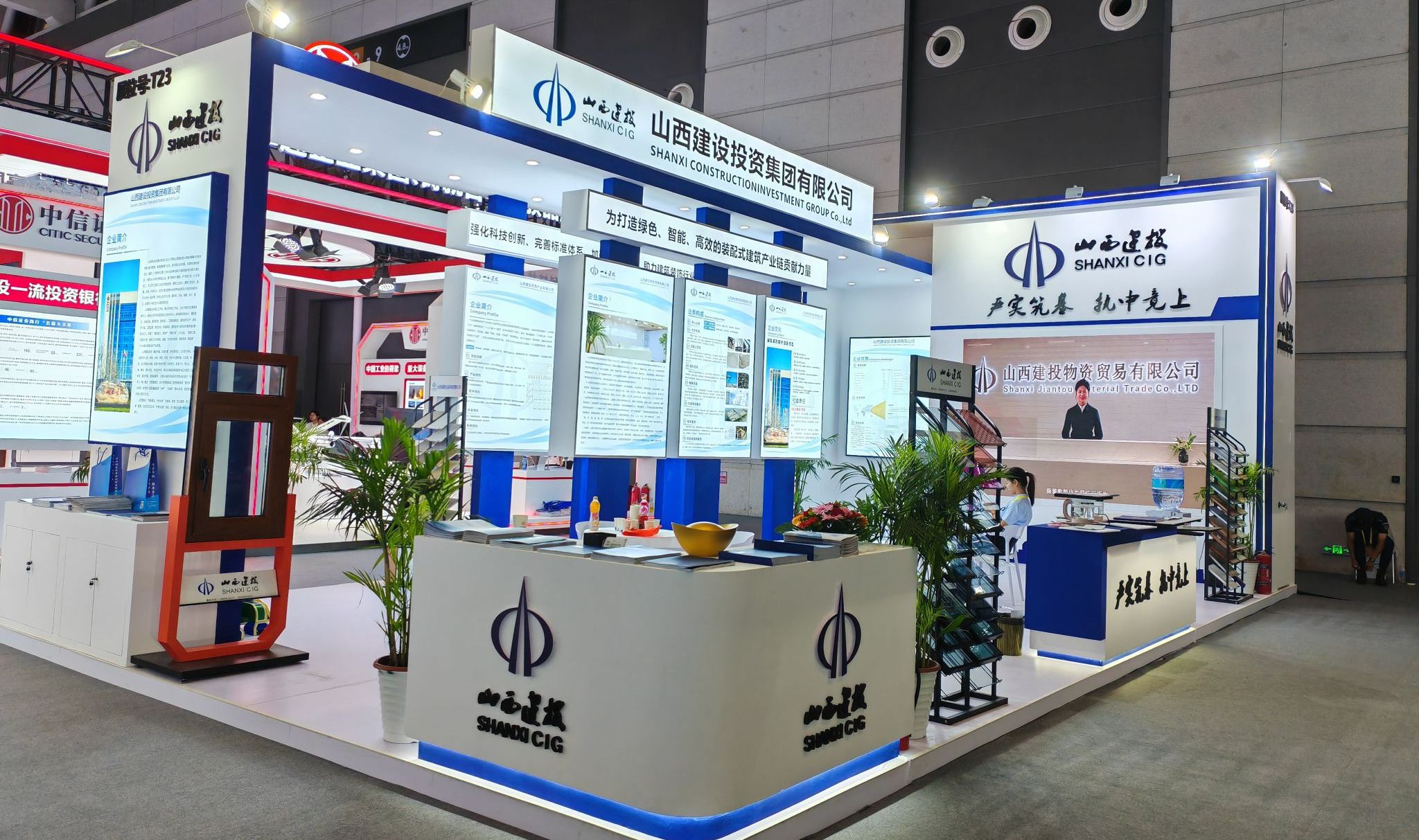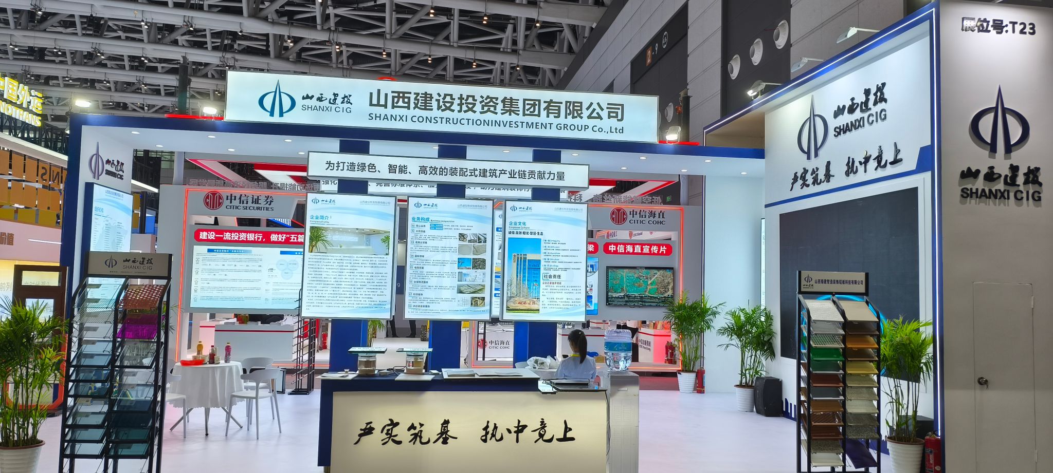 展会现场,,,,,建投集团以图文、影像、宣传册等形式,,,,,全方位泛起了企业整体形象和全工业链优势,,,,,多维度展示了在物资商业、装配式绿色建材等领域的生长效果和生产产品。。。展厅吸引了众多专家、客商、嘉宾驻足旅行、咨询交流。。。