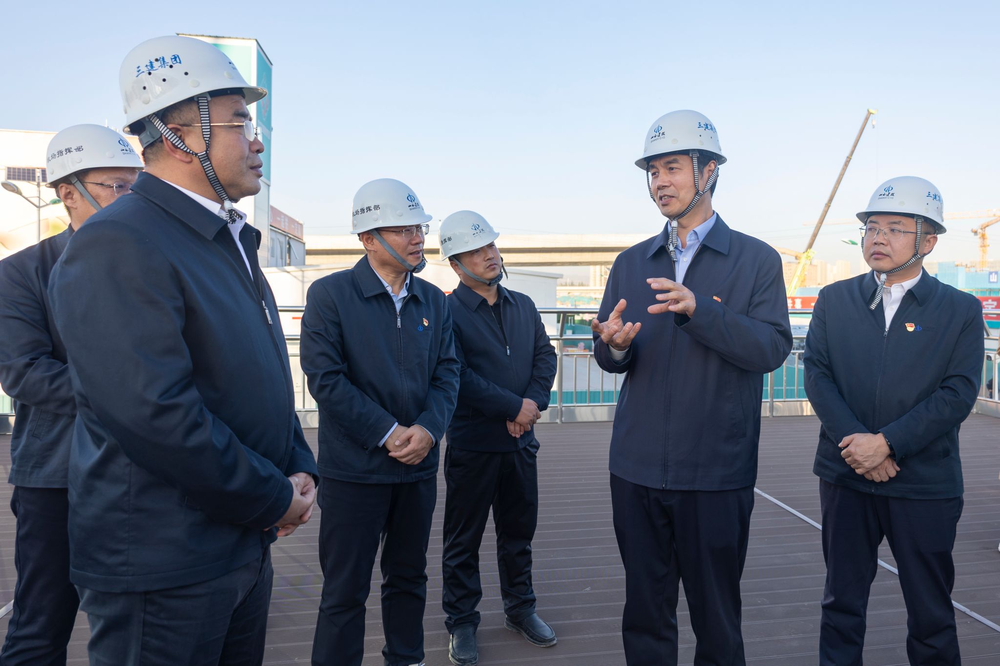 宣讲报告竣事后,,,,,戎劲光深入太原武宿机场三期改扩建项目与一线职工举行了面扑面、互动式宣讲,,,,,建投集团副总司理祁立柱等相关职员陪同。。。。