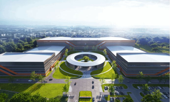 在手艺难度极高的长治高新区锂电工业园制造基地项目,,,,挑战亘古未有:近40米高的单层厂房、38米的大跨度钢结构、3000平方米的圆形曲面玻璃幕墙……古板施工要领难免左支右绌。。。。