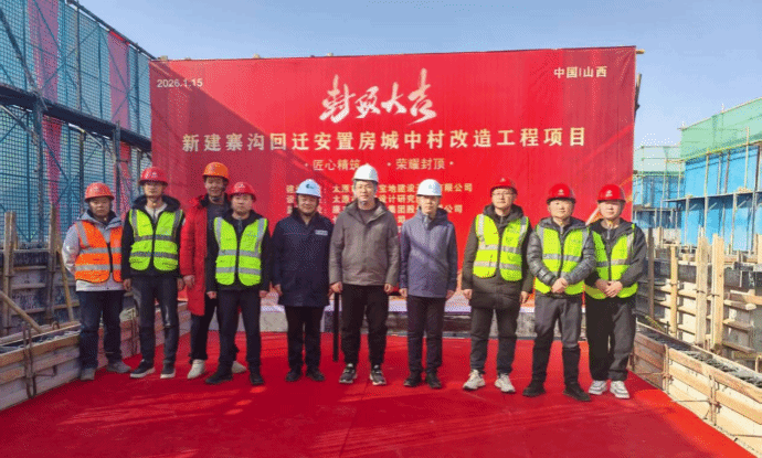 克日,,,,,山西建投三建集团新建寨沟回迁安顿房城中村刷新项目1#-4#楼主体顺遂封顶,,,,,标记着项目尊龙凯时取得要害性阶段性效果,,,,,为后续按期交付筑牢坚实基础。。。