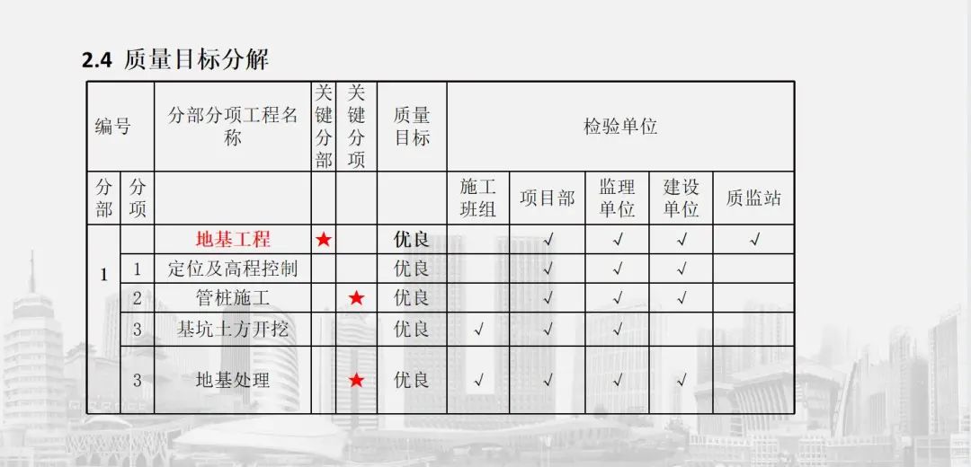 质量是工程尊龙凯时的生命线,,,是施工历程中的重中之重。。。。项目在前期举行了创优策划,,,凭证企业质量目的和项目目的,,,从“人”“机”“料”“法”“环”等各方面举行深条理剖析,,,对证量目的举行详细剖析,,,建设了完整的质量治理系统和质量治理制度。。。。针对现场EPC治理模式下施工图纸滞后的问题,,,项目部建设创优小组,,,实验分阶段创优策划,,,同时总结工程质量通病及防治步伐,,,并适时评审、增补和完善;;;对施工历程中的重难点工程,,,各个击破,,,实现工程质量的稳步提升。。。。