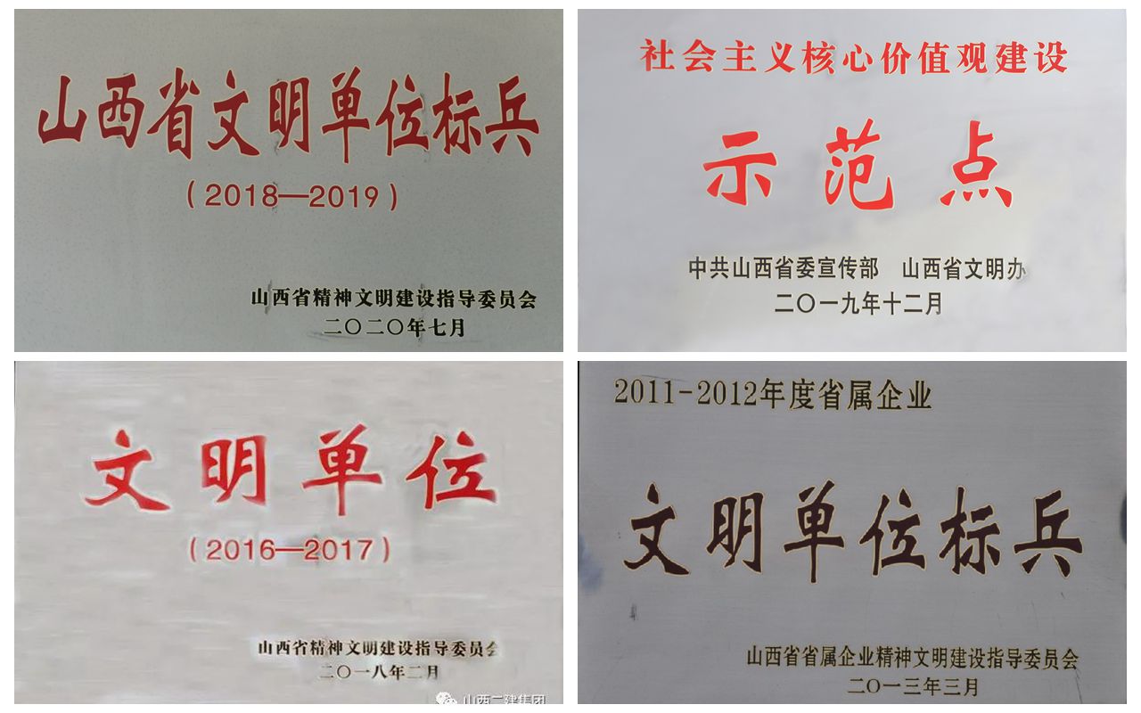 公司文明单位建设事情始于2002年,, ,,,自此至2019年,, ,,,一连17年荣获“省属企业文明单位尖兵”庆幸称呼,, ,,,2012年到2019年,, ,,,四度连任“山西省文明单位”声誉称呼。。多年来,, ,,,公司党委始终坚持信心不摇动,, ,,,咬定目的不松开,, ,,,立异实干不懈怠,, ,,,在精神文明建设上出品牌、出制度、出规范,, ,,,载体有用、步伐得力,, ,,,在全体职工的精诚团结和配合起劲下,, ,,,收获天下文明单位硕果。。