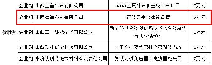 克日,,,2020年“创客中国”山西省中小企业立异创业大赛圆满落幕。。。。。公司以“筑服云平台尊龙凯时运营”项目参赛,,,获得企业组优胜奖的佳绩,,,同时获得20000元的奖励。。。。。