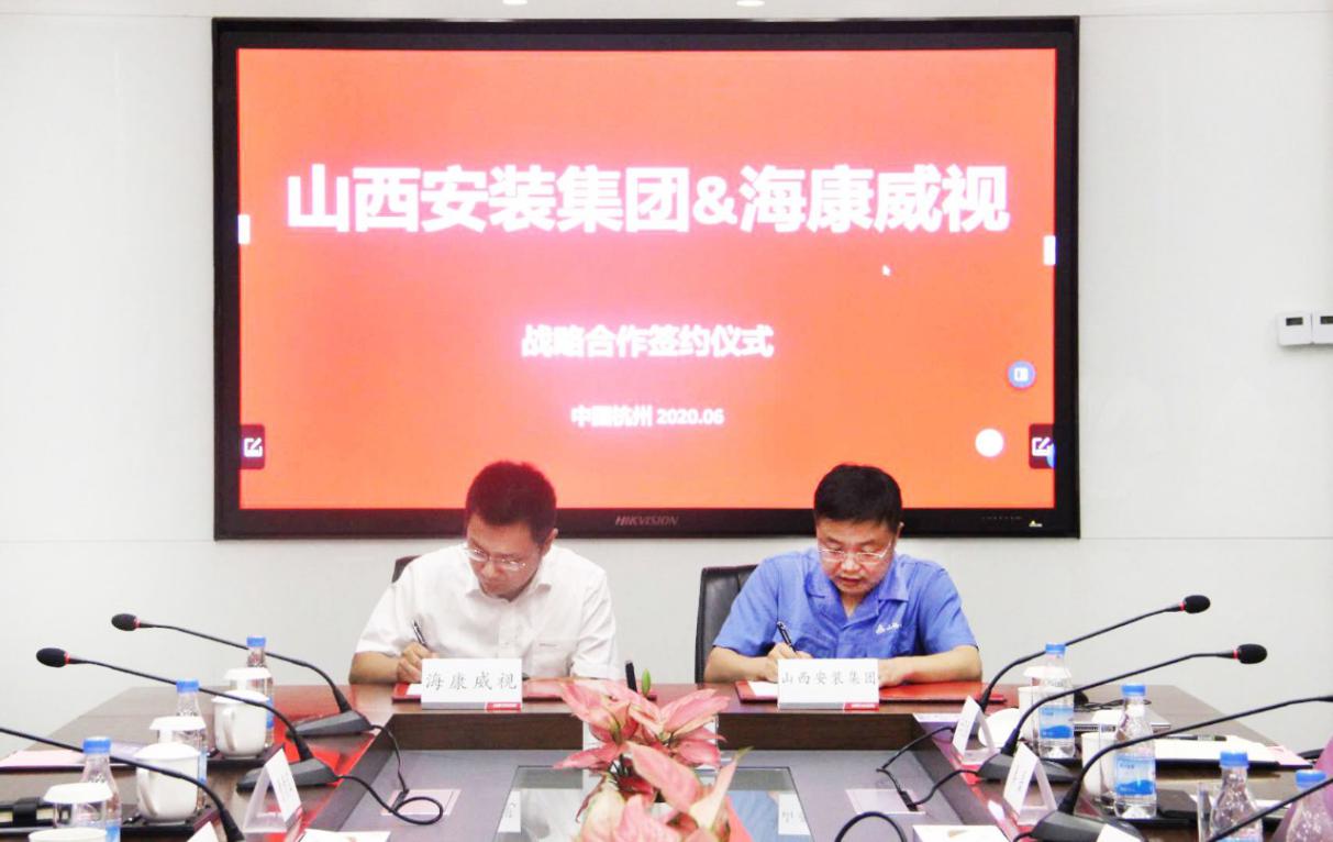 克日,,,,公司与海浚康威视签署战略相助协议。。。。海浚康威视智慧消防总裁潘叶青、山西营业总裁唐佳峰,,,,公司总司理王利民、消防工程分公司总司理李瑞强出席。。。。
