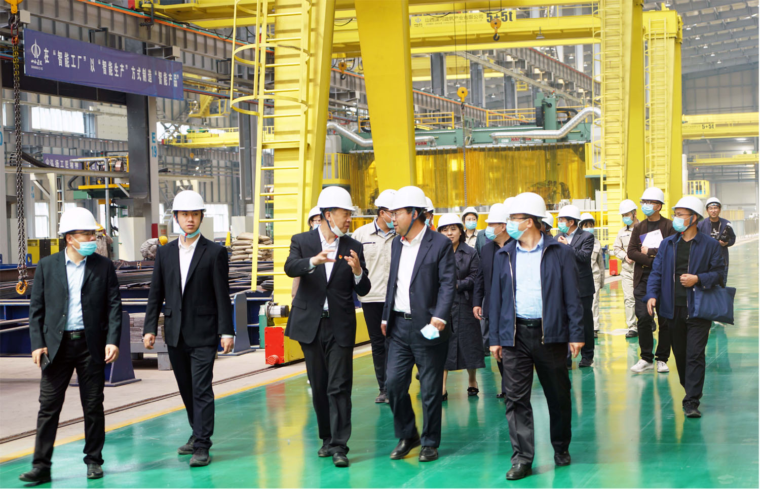 会后,,,,与会职员配合旅行了潇河园区智能制造车间以及装配式钢结构办公生涯区项目。。