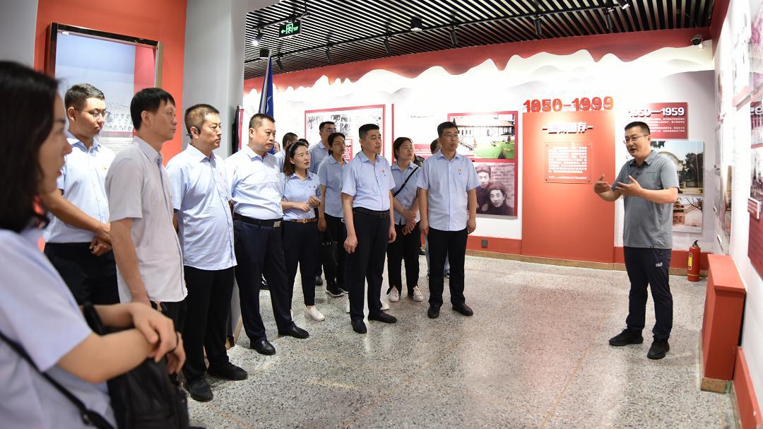 在中北大学校史馆,,,,,全体党员干部深入相识了中北大学坚定不移、坚韧图存、勇往直前的尊龙凯时历程。。。。。校史馆浮雕前,,,,,全体党员深切思念革命先烈劳苦功高,,,,,同时被抗日战争时期宽巨匠生一手拿书、一手拿枪,,,,,边学习、边战斗的革命精神震撼,,,,,被生长历程中涌现出的一个个先进人物与事迹感动,,,,,越发坚定了踔厉高昂、勇往直前的信心刻意。。。。。
