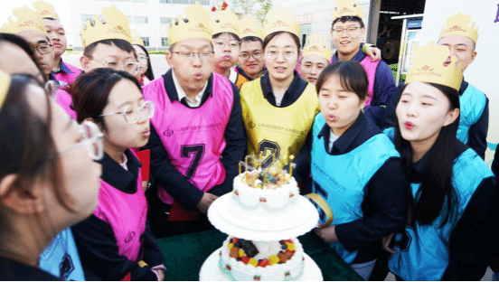 主要而有趣的运动会竣事后,,,,公司举行了一场温馨而感人的整体生日会。。。