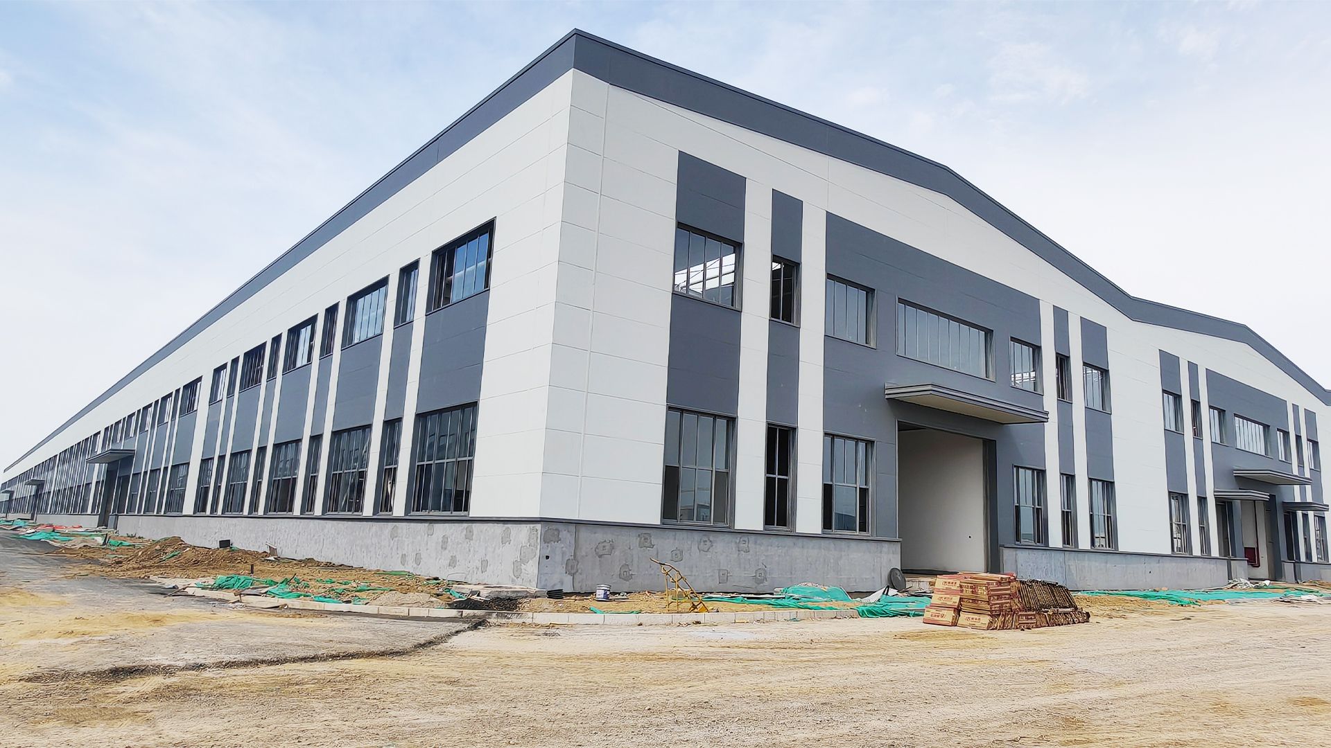 克日,,由山西建投潇河工业公司承建的无尾钢化真空玻璃工业园2#厂房项目周全完工,,历时七个月,,高效优质地完成磷泼项目钢结构及围护结构工程尊龙凯时施工使命。。。