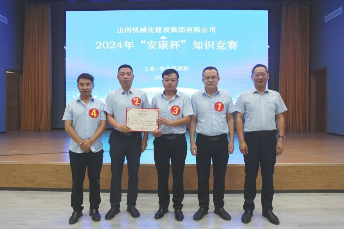 7月14日,,,,,山西建投契械化集团组织开展2024年“安康杯”知识竞赛。。。。党委专职副书记、副董事长、工会主席成军胜,,,,,副总司理、清静总监孙建民,,,,,总工程师杨隆限出席本次运动。。。。