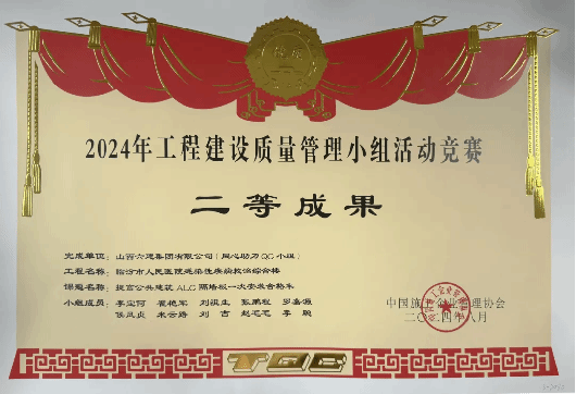 山西建投六建集团恒力智成QC小组《可单人操作的混凝土墙体洞眼封堵装置的研制》和同心助力QC小组《提高公共修建ALC隔墙板一次装置及格率》两项效果荣获“2024年工程尊龙凯时质量治理小组运动竞赛二等效果”,,,,1人荣获“质量治理小组运动尖兵”声誉称呼。。