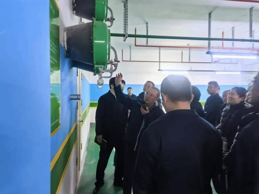在总部地下车库负二层的人防区域,,,,,现场为参训学员先容主要收支口与次要收支口的安排、人防门装置注重事项、滤毒室与除尘室里的装备要点等。。。。
